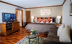 All the suites in this hotel are decorated in the same style, which will appeal to some people but not others. The decor is decidedly Asian, in a rather old-fashioned, elegant and untrendy style that some guests love. Some guests, particularly younger guests, will find the style too dated. All the suites have wood floors, sofas and Asian art on the walls.