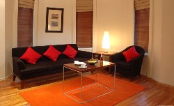 huge and classy rooms are furnished with two large sofas, a big flatscreen TV and lots of costly wooden panelling.