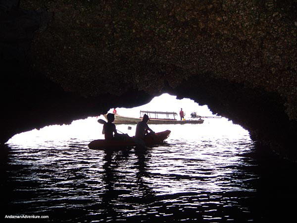 "Window" is the name for a cave that is invisible at high tide due to being underwater. At low tide the "window" cave is dry, exposing sharp rocks and mud and therefore not navigable by kayak. Only when the tide is at a certain level, not high or low, can we enter the "window" cave and enter the hong.