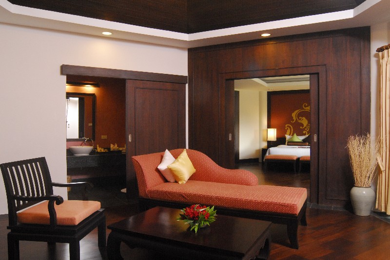 The ground and first floor roooms have no significant seaview, but the 2nd floor rooms do. Wooden floors and complementing pastel hues make these very tastefully decorated rooms. The two queen-sized beds make these rooms an option for families, but not one that will give parents any moments of privacy. For families with older children, better options exist in Khao Lak.