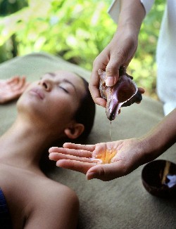 | Outside, the small walled garden is surrounded by just the right amount of foliage and gives the plunge pool and sala (open-sided pavilion) perfect privacy, ensuring two more spots for honeymooners to get romantic – many couples are rarely seen outside their bungalows, taking most meals in their sala and only emerging for the occasional sunset walk on the beach. |