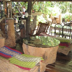 With huge trees poking through the floors and ceilings, the resort offers the quirkiest of nights’ sleeps, and is highly recommended. The owner, Khun Sakda, sold his business in Koh Samui in 2004 to escape the island’s rampant commercialization, and now sleeps in a bamboo shack suspended above the restaurant.