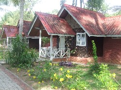 These bamboo bungalows won't wow anybody, but are in reasonable condition and, if the visitor can overlook the signs of wear in the bathroom, a reasonable choice. The best beachfront bungalow is the northernmost one, but not by much, as they all offer similar views and privacy.