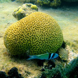 | The sponge corals are particularly impressive here (see the image on the right), the brain corals are huge and finely wrought (see the above image), the mountain corals look like massive melting blocks of iridescent marshmallow, and the table corals are big enough for a small tribe to set place-mats at (see image below). |