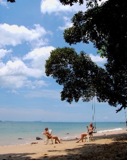 | The pretty and un-crowded beach, which is over 1 km in length and is set against a backdrop of jungle-clad-mountains, is perfect for children, and there are plenty of trees providing shade. The swimming is excellent in front of the resort except at low tide, when too many rocks are revealed. |
