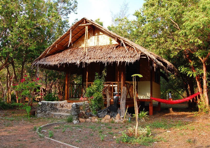 The bungalows are very, very quiet. With their tiled bathrooms, large beds, thatched roofs and comfortable porches, these bungalows are some of the best bargains on Koh Jum.