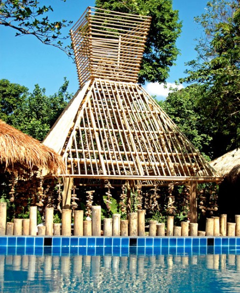 On the exterior, the thatched roofs, liberal use of wood and pastel paint jobs blend in with the environment.