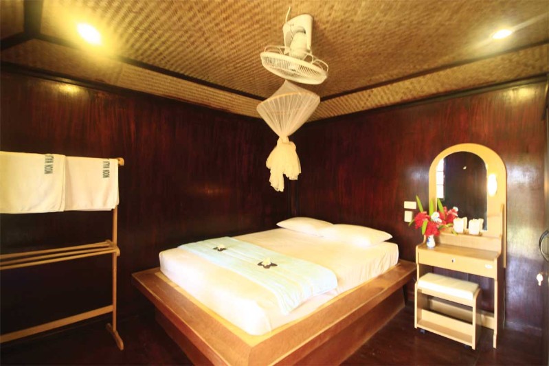 These bamboo rooms are the same as the Deluxe rooms, except that they have fans instead of air-con and are a little further from the beach.