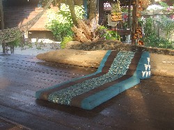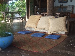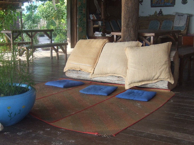 The visitor is spoiled for choice for comfy places to collapse – hammocks, Thai cushions, bamboo benches with comfy cushion backs, driftwood backed by comfy cushions – it’s quite a job figuring out which spot you fancy most.
