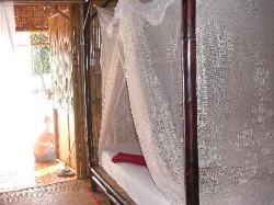 | The huts are almost new, spotlessly clean and are made completely from bamboo. There is a semi-outdoor bathroom at the back. The beds are comfortable and are encased in huge, clean mosquito nets. Each hut has a fan and there is also a nice little sitting area at the front. |