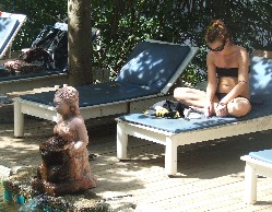 The reception and restaurant area is modest but attractively constructed out of wood, most of it timber poles in the round. Tropical foliage sways all round.