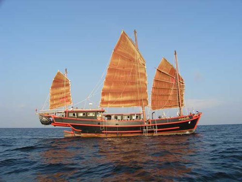Experience a totally unique Similan Islands liveaboard diving cruise onboard a Chinese sailing Junk. The Junk "June Hong Chian Lee", 33 metres, is one of the best known Phuket liveaboards, and carries a maximum of 18 customers to the Similan and Surin Islands for the diving experience of a lifetime. The June Hong Chian Lee has 6 cabins - two private double, two shared triple (can be booked as a double or twin) and two shared quads.