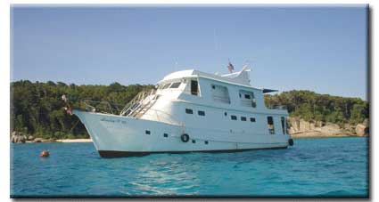 Aboard Le Mahe, rebuilt in 2002, cruising from Phuket with 12 guests in 6 double and twin air conditioned cabins, all with private bathrooms, you can enjoy the beauty and fantastic diving in the Similan and Surin Islands, and sleep in comfort. This is not a big boat, but the cabins and facilities make up for the lack of size. No other boat of this price has en suite cabins. Included in our price is a double or twin en-suite cabin with air-con.