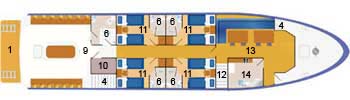 1 Dive Platform - 9 Dive Deck - 10 Storage - 11 Twin Cabins