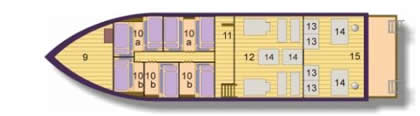 M/V Seafarer is a comfortable live-aboard wood and steel dive vessel. She may accommodate up to 14 passengers: 6 in three 'VIP' A/C private cabins (two single berths) and 8 in two 'FIRST CLASS' A/C cabins (four single berths). Each cabin has 2 or 4 single berths with standard mattresses (200x90). As most of our customer's book 'VIP passenger' cabins, most of our cruises have a maximum of 8-12 guests which enable a better service. She has two showers/toilets. The decks are wide and spacious to provide guests with a maximum diving convenience and tropical living.