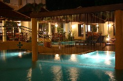 The restaurant serves a decent breakfast, except that many people will dislike the sweet white bread that accompanies it. If you book on this site, we will supply you with a fresh quality loaf on arrival, as well as giving you a hopefully unbeatable price. The restaurant is adequate for a lazy pool-side lunch, but not very inspiring for dinner, plus offers poor value for money. A better idea is to eat out, click here for the restaurant/nightlife/amenities map.