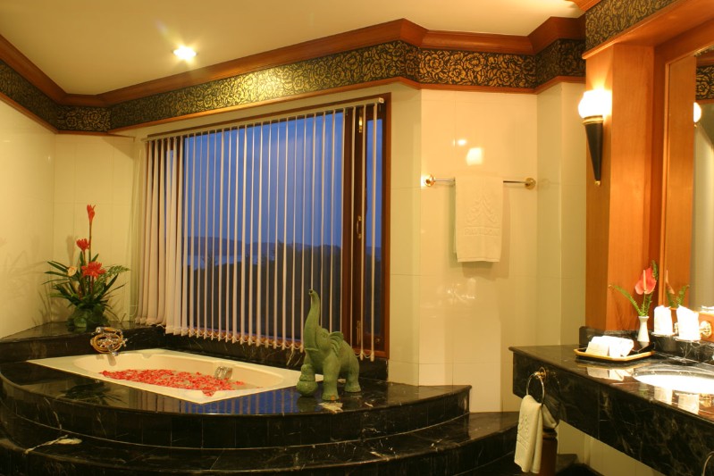 The ‘Pavilion Suites’ dining rooms lack sufficient windows and so are rather dark, making the suites little more luxurious than the ‘Superior’ and ‘Deluxe’ rooms, and therefore not recommended. The ‘Pavilion Suite’, ‘Deluxe, and ‘Superior’ rooms have areas of 98 sqm, 66 sqm and 50 sqm respectively. The suites have a separate bedroom and living room, with spacious bathrooms that overlook lush tropical forests down the hill on which the hotel is situated. All rooms and suites feature the usual modern day accoutrements; satellite television, radio, in-room safe, mini-bar, direct dial telephone, coffee & tea making facilities, room service, laundry and dry cleaning.
