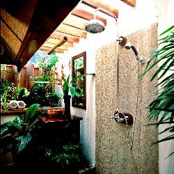In all the rooms the decor is extremely tasteful and elegant. The large outdoor bathrooms, with their huge rainfall showerheads and copper vessel sinks decorated by beautiful vegetation, are particularly appealing. Bring bug spray, because there are mosquitoes aplenty here. The well air-conditioned bungalows come with adorable mosquito nets, which add to their romantic atmosphere but can’t guarantee complete immunity from being bitten. Most guests get bitten on the outdoor toilet - whilst many guests will feel it’s worth a few bites to stay at such a lovely place, others won’t.