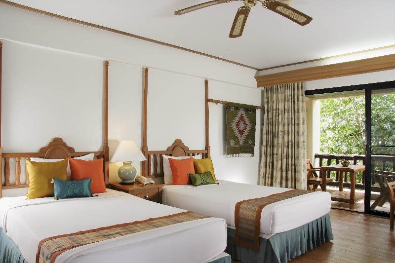 The ‘Deluxe’ rooms are immaculate and furnished with understated elegance and style – even the paintings on the walls are tasteful, which is most unusual in Thailand, even in the best resorts, as resorts usually decorate the walls with hybrid Western-Thai paintings, which please neither Westerners nor Thais. The Ao Nang Vogue has sensibly stuck to pure Thai-style artwork. Some of the ‘Deluxe’ rooms have good sea-views, others less good. The higher the room, of course, the better is the view. Also, the views from some of the higher-floor rooms are to a large extent obscured by trees. Contact us to ensure you get the best sea-view possible, in addition to an unbeatable price.