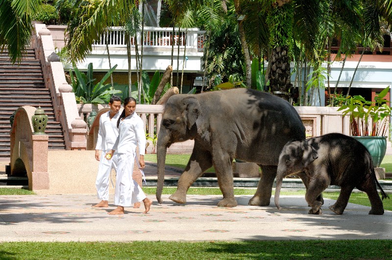 The Sheraton Grande Laguna is popular with families as well as with honeymooners. The resort’s pair of resident elephants, Lilly and Lucky, spend their days wandering around the resort grazing on fruit, and are a huge hit with children.