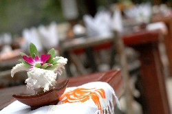 These larger villas are ideal for honeymooners. In addition to all the facilities of the tropical Villas described above, they offer newly-weds various interesting spots for romance - besides the over-sized bed, there is a large chaise longue, a bathtub and a lovely outdoor shower complete with tropical shrubbery and trees festooned with orchids.